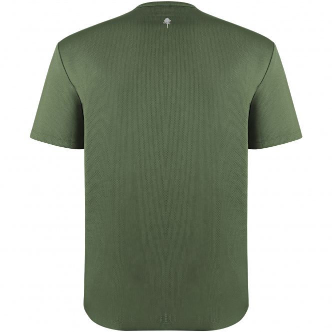 Leichtes, atmungsaktives T-Shirt mit 4-Wege-Stretch und reflektierendem Print. Ideal für Fitness, Laufen oder Wandern. Mit luftiger Mesh-Konstruktion für Feuchtigkeitsregulierung und weichem, pflegeleichtem Material für maximalen Tragekomfort. Oeko-Tex® zertifiziert. Farbe: mossgreen.