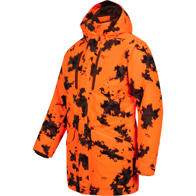 Dicke Daunenjacke in Parkalänge für optimale Wärmehaltung und maximalen Komfort bei geringem Gewicht. Die Membrane aus zwei Lagen ist wasserdicht, winddicht und gleichzeitig atmungsaktiv. Zusätzliche Wasserbeständigkeit durch DWR-Behandlung. 3D-Daunenkammern am mittleren Rücken schließen die Wärme ein und passen sich optimal den Körperkonturen an. Mit abnehmbare, verstellbare 3-Punkt-Kapuze und mehreren praktischen Taschen. Die zwei Brusttaschen mit Reißverschluss dienen zugleich als Funkgerätetaschen, während die Napoleontasche unter der mittleren Vorderteilblende zusätzlichen Stauraum bietet. Die zwei großen Handwärmertaschen mit Patte, dehnbarer Falte und Schlaufen sind ideal für weitere kleine Ausrüstungsgegenstände und jagdliches Zubehör. Fleecebündchen an den Ärmeln und der verstellbare Saum sorgen für noch mehr Stauraum, Komfort und Funktionalität. Dazu extrem geräuscharm. Wassersäule: 10.000 mm. Atmungsaktivität: 10.000 g/m² / 24 Std.