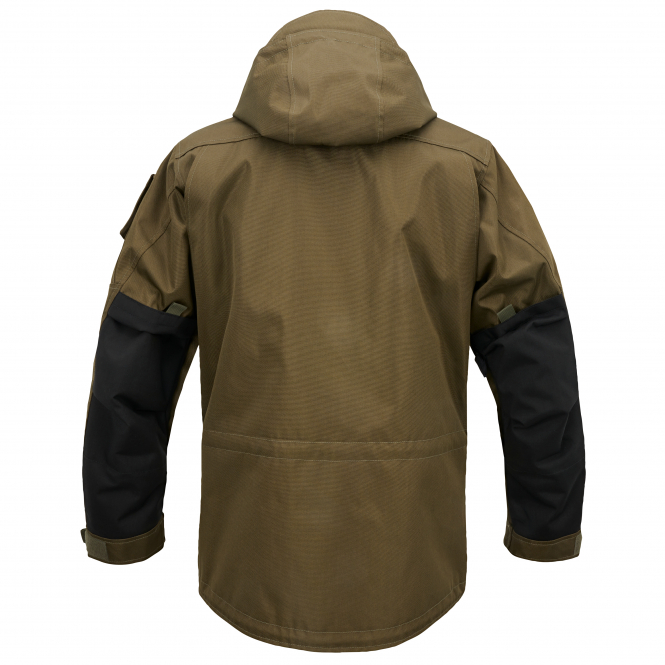 Funktionelle Jacke aus wasserabweisendem 900D-Polyester und 500D Cordura mit stabilem 2 Wege YKK Reißverschluss mit hinterlegter Windschutzleiste. Das atmungsaktive Mesh-Innenfutter und die Ventilationsöffnungen sorgen für ein angenehmes Trageklima. Mit großer Innentasche, Oberarmtasche (auch passend für große Smartphones), Unterarmtasche, 1 verdeckte Fronttasche, 3 aufgesetzten Fronttaschen mit Klettverschluss und unterlegten, zusätzlichen Reißverschlussfächern. Taille, Saum und Ärmelabschlüsse sind weitenverstellbar. Mit verstellbarer und abnehmbarer Kapuze mit Schirm und Cordura-Verstärkung im Ellenbogenbereich. Auf dem Oberarm und der Brust befinden sich Klettflächen und Molle-Bänder.