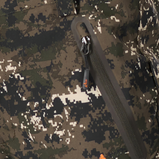 Die perfekte Camouflage Jagdhose mit LagoTex Membran bietet uneingeschränkte Bewegungsfreiheit, egal ob auf der Pirsch, beim Wandern oder anderen Outdooraktivitäten. Das leichte und geräuscharme Material macht die Hose zu einem zuverlässigen Begleiter und einem Muss in jedem Kleiderschrank. Sie ist wasserdicht mit einer Wassersäule von 8.000 mm und atmungsaktiv mit 3.000 g/m²/24h. Ausgestattet ist die Hose mit 2 Fronttaschen mit Reißverschluss, 2 Schenkeltaschen mit Reißverschluss, einer Gesäßtasche mit Reißverschluss sowie einer hinten angebrachten Messertasche, die mit Kontraststoff abgesetzt ist. Farbe: camouflage.